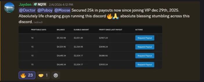 I have spent the last 5 years studying the markets and creating a systematic approach to trading based on the principles of probability, risk management, and repetition. In this time, I have made multiple six figures in payouts and helped over 300 traders become profitable themselves.