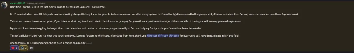 Inside Discord you can tag me or Doc with market questions any time, and we respond the vast majority of the time. That means you’re never stuck alone on a chart—you always have experienced eyes to help you move forward.